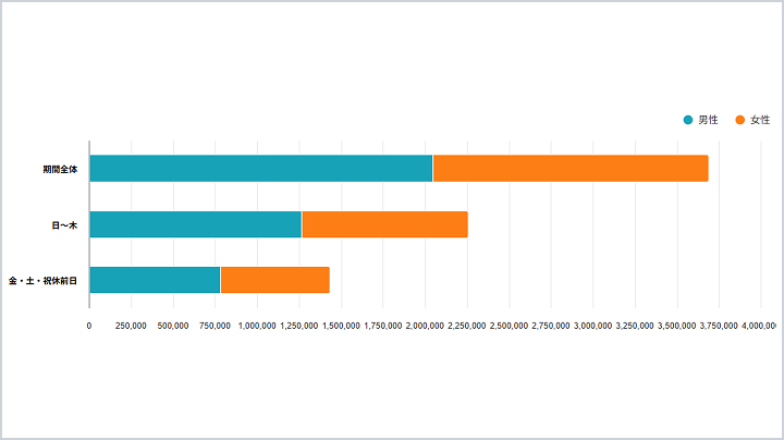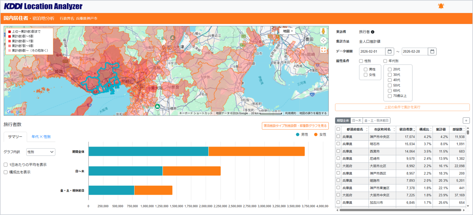 宿泊/日帰りの比率も可視化します。