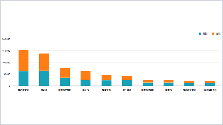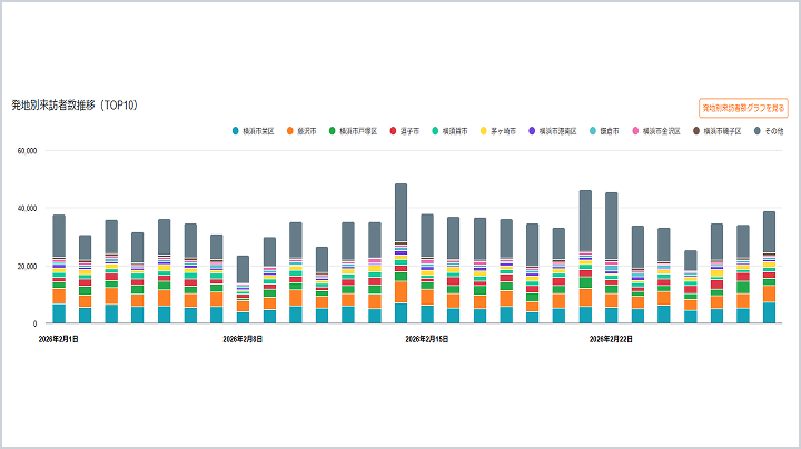 都道府県・市区町村単位で、目的地への旅行者数を発地別にグラフで表示